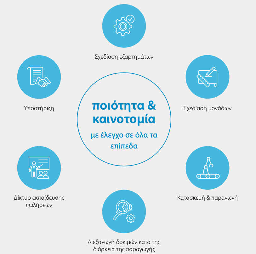 Η ποιότητα και η καινοτομία είναι δομικές αξίες της φιλοσοφίας Daikin. Ενισχύονται καθημερινά από την εντατική εκπαίδευση που προσφέρουμε στο δίκτυο πωλήσεών μας, καθώς και από τη βελτίωση των διαδικασιών παραγωγής. Η κατασκευή συμπιεστών, ψυκτικών μέσων και εξαρτημάτων από εμάς τους ίδιους, μας επιτρέπει να σχεδιάζουμε τον έλεγχο ποιότητας των προϊόντων μας από την αρχή.