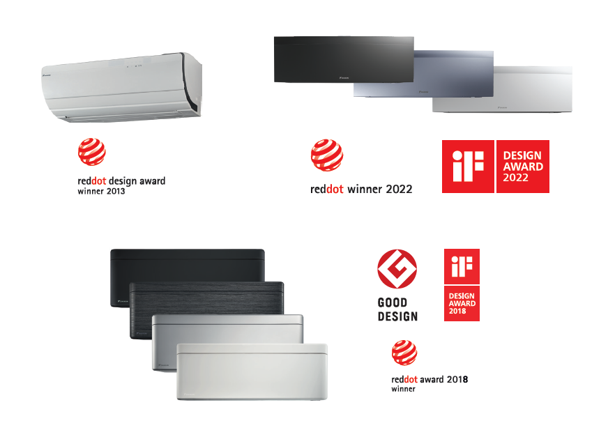 Οι σειρές Emura, Ururu Sarara και Stylish της Daikin έχουν λάβει πολλά βραβεία για την πρωτοποριακή τους σχεδίαση και τα λειτουργικά χαρακτηριστικά τους.