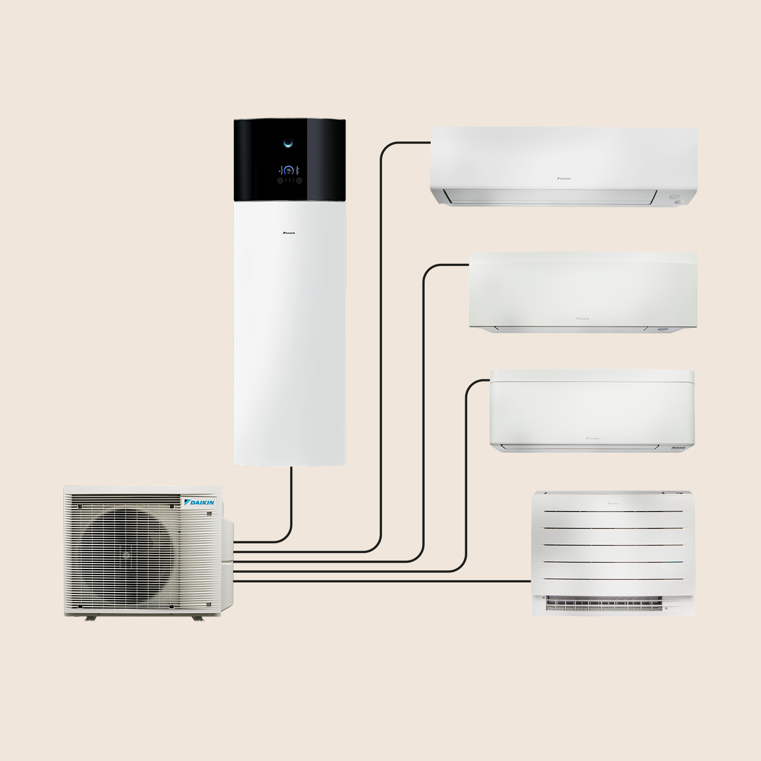Μπορείς να θερμάνεις και να ψύξεις το σπίτι σου και να έχεις ζεστό νερό, συνδέοντας μία εξωτερική μονάδα με έως και τέσσερις εσωτερικές μονάδες και μια δεξαμενή ζεστού νερού